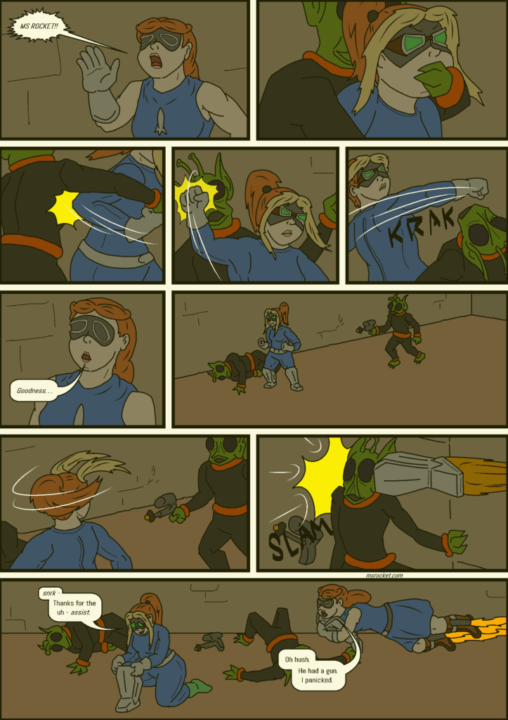 Still, a rocket booth to the face would still cause some damage. Ms Rocket’s plan wasn’t THAT silly.